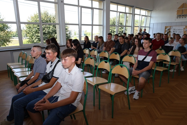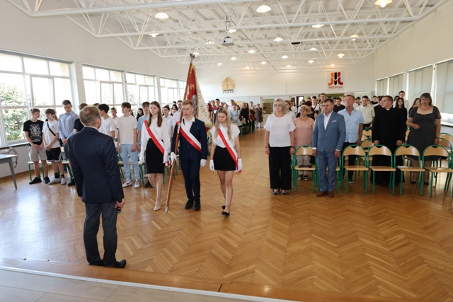 2 września 2024 roku, w upalne przedpołudnie, spotkali się w auli szkoły nowicjusze i weterani edukacji. Mowa o pierwszoklasistach i maturzystach, bo to im przypadł zaszczyt uczestniczenia w uroczystym rozpoczęciu roku szkolnego 2024/2025. Uczniów i nauczycieli powitała wicedyrektor szkoły Pani Anna Lasota. Najmłodszym życzyła wytrwałości w zdobywaniu wiedzy, a najstarszym połamania piór na egzaminie maturalnym.