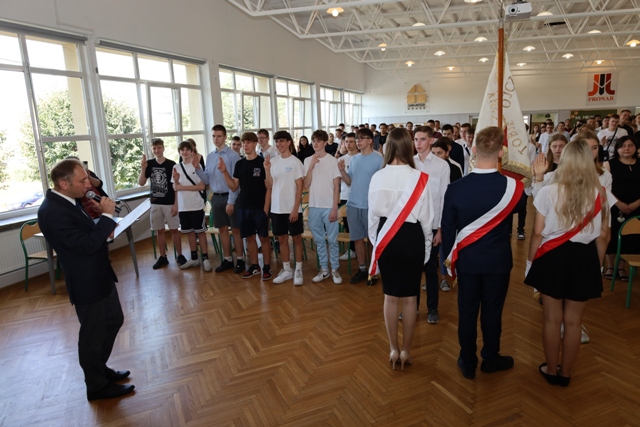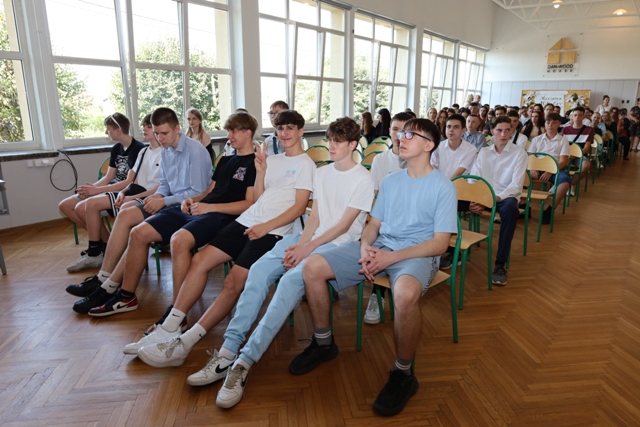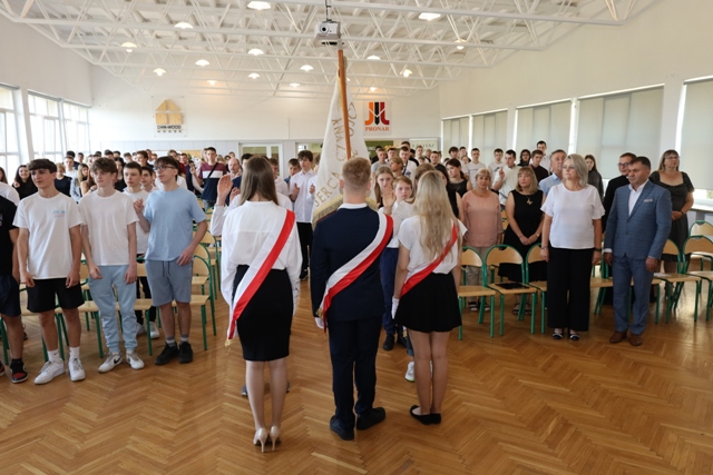 2 września 2024 roku, w upalne przedpołudnie, spotkali się w auli szkoły nowicjusze i weterani edukacji. Mowa o pierwszoklasistach i maturzystach, bo to im przypadł zaszczyt uczestniczenia w uroczystym rozpoczęciu roku szkolnego 2024/2025. Uczniów i nauczycieli powitała wicedyrektor szkoły Pani Anna Lasota. Najmłodszym życzyła wytrwałości w zdobywaniu wiedzy, a najstarszym połamania piór na egzaminie maturalnym.